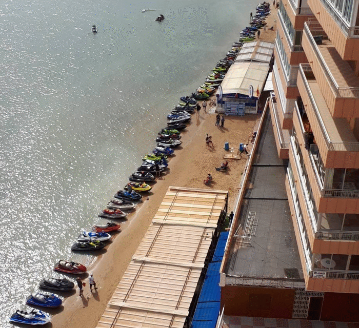 Here you are surrounded by the beach, a pool area, and the main street leading into the center with its variety of shops, restaurants, and services. The apartment is in the residential complex NaveMares 1, on the 5th floor, 95 sqm, with 3 bedrooms, each with 2 sleeping spots. Sleeps 6+2.